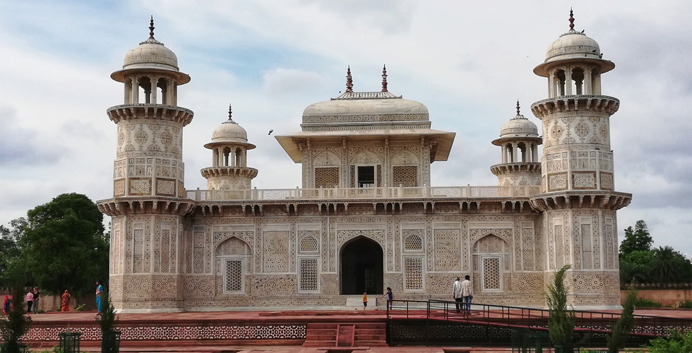 After spending about an hour at the Agra Fort, appreciating the architectural beauty of the Diwan e Khas, Emperor Jahangir's palace built of red sandstone, the Shish Mahal, etc, we headed over to the Tomb of Itimad-ud-Daulah, constructed by Noor Jahan for her father Mirza Ghias Beg. This tomb is fondly referred to as Baby Taj, due to the resemblance in architecture with the Taj Mahal with the white marble and pietra dura inlay.